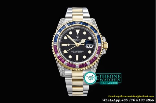 BP Factory Best Edition Blue/Red Rubies Bezel GMT Master with Asia 3186 Clone modified with decorated rotor, bridges/plates
