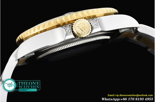 CASE MATERIAL: Two Tone 18K Yellow Gold Thick Plated (5 mils) on Solid Stainless Steel 316F (Case Lugs are Diamonds Crested)